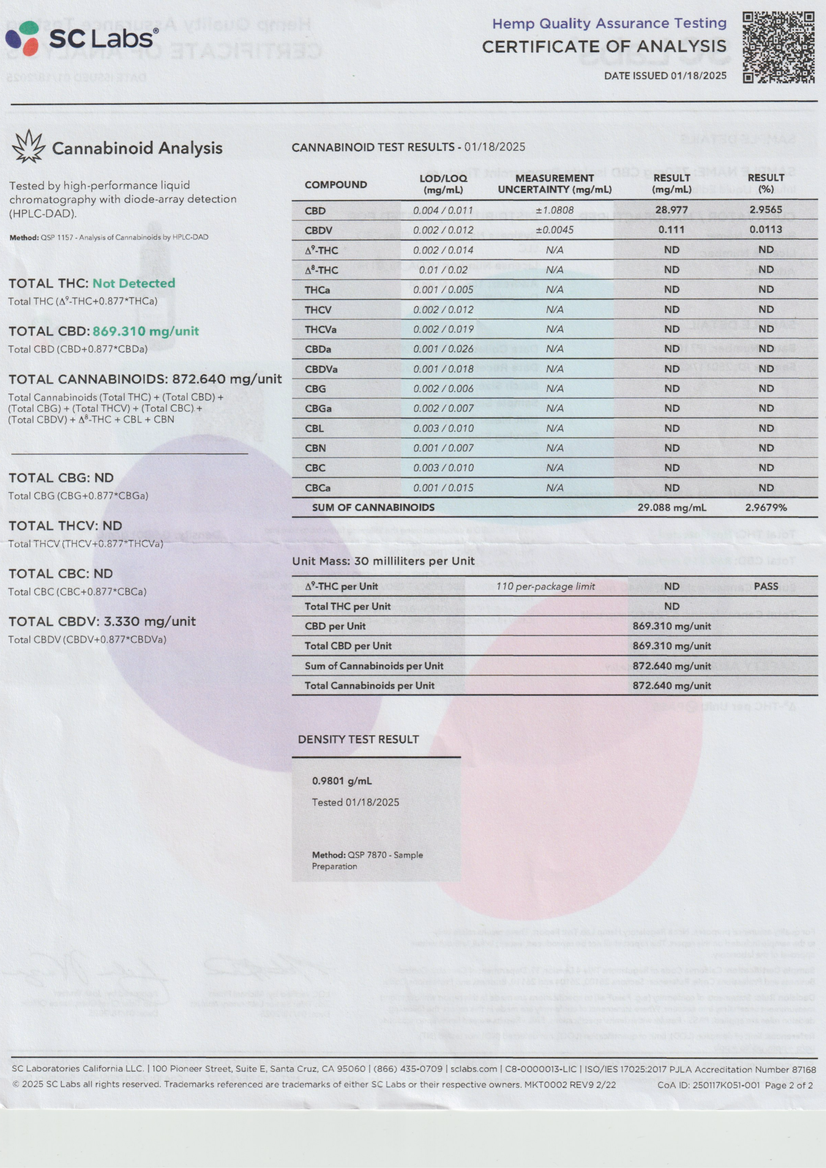 View the independent lab report (Certificate of Analysis). This COA has two pages: